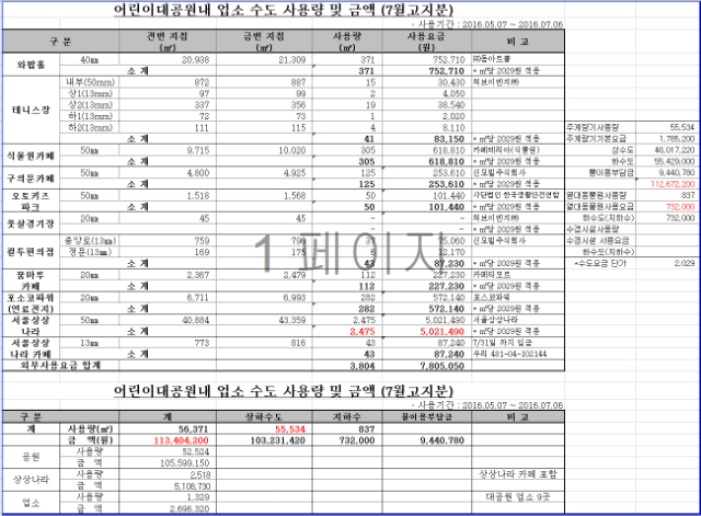 양변기 250개, 7월 한달 수도요금이 1억이 좀 넘게 나오네요..